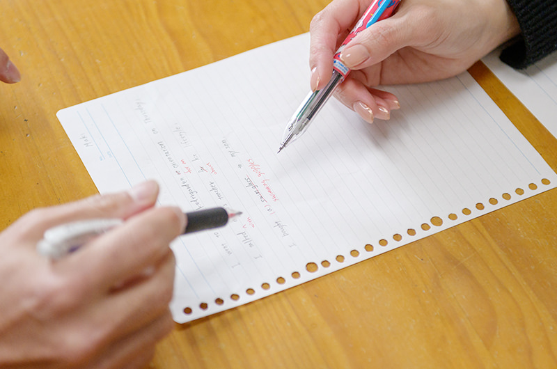 文法に間違いはないか、自分の思いをよりよく伝えるためにほかの表現はないかなどをチェックし、英語の上達をサポートします。